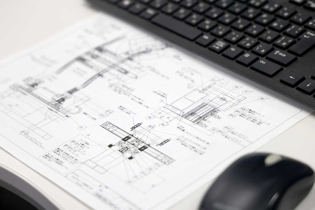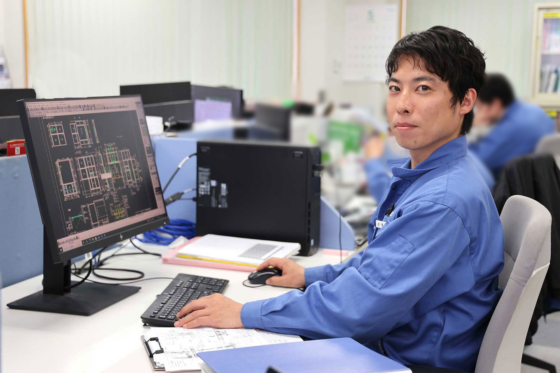 設計部では、お客様のご要望を伺いながら設備の仕様を一緒に検討し、それをもとに設計図を作成しています。