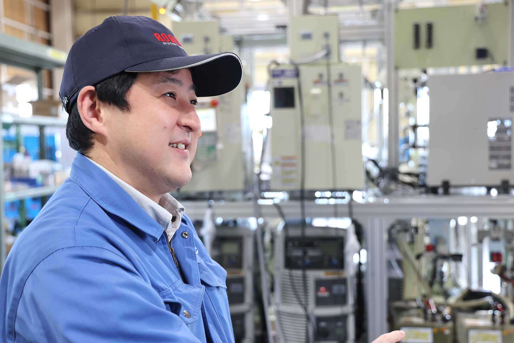 もともと「ものづくりをしたい」という想いがあり、就職活動をしていた際に「ロボテック」という社名に惹かれて興味を持ちました。大学では情報系を学んでいましたが、勧められて電気の仕事に挑戦することを決意しました。気づけば入社から20年が経ちましたが、今も日々新しい発見がある仕事です。