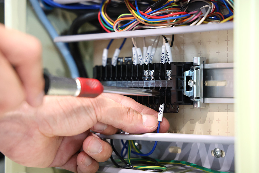 電気部では、電気回路の設計からソフト開発、最終的な装置の調整まで一貫して担当しています。制御設計はもちろん、タッチパネルなどの表示やインターフェース設計も含まれます。現在、電気部は2名で業務を分担しており、外部業者さんとの連携も多いため、誰が見てもわかる図面作りも大切にしています。